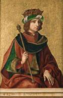 está sentada Santa Catalina de Alejandría, ricamente ataviada y con un libro